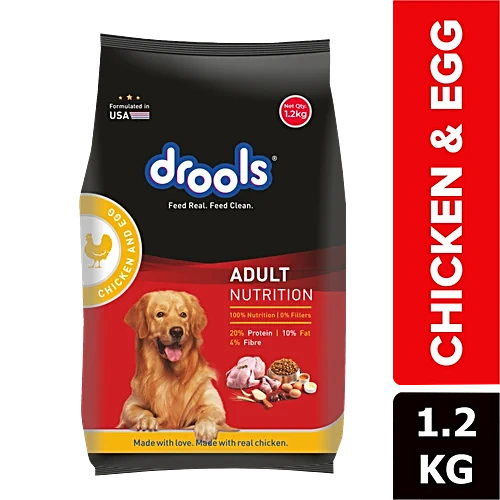 | DROOLS FOCUS ADULT 1.2KG | Drools Focus Adult Super Premium Dry Dog Food – Complete and balanced super‑premium dry dog food for adult dogs of all breeds in a 1.2 kg pack. Made with real chicken as the primary ingredient and fortified with essential vitamins, minerals, omega fatty acids, probiotics and antioxidants to support healthy muscles, immunity, digestion, skin & coat, and overall vitality |