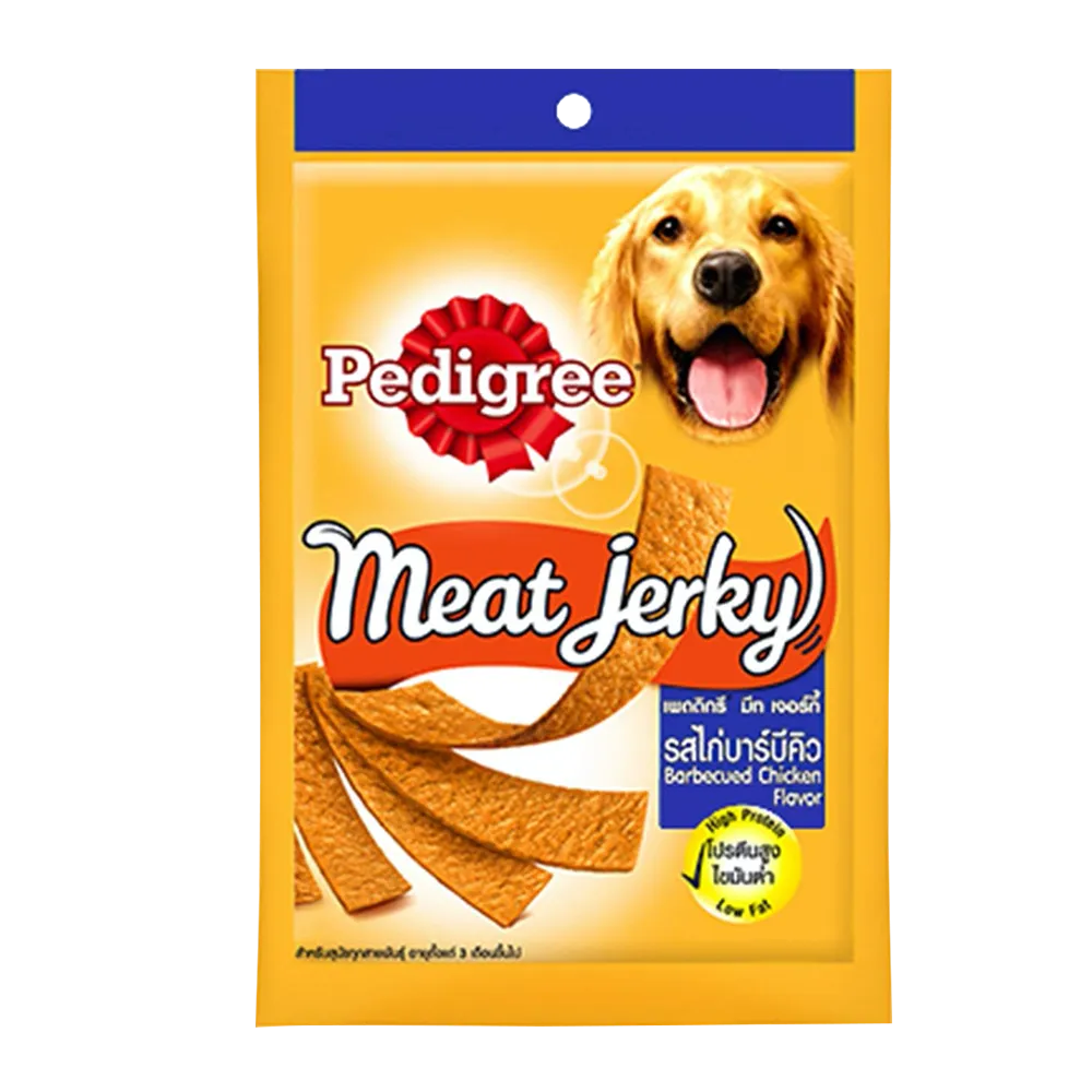 | PED MEATJERKY BBQ CHKN 80GM | Pedigree Meat Jerky Barbecued Chicken 80 g is a tasty, soft-chewy dog treat made with real barbecued chicken flavour. It’s perfect as a reward or snack for adult dogs, satisfying their natural instinct to chew while giving them a delicious meaty taste. |