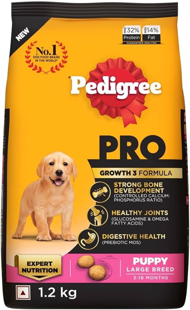 | PED PRO PUPPY LARGE BREED 1.2KG | Pedigree PRO Puppy Large Breed 1.2 kg is a complete dry dog food specially formulated for large breed puppies (3–18 months). It delivers balanced nutrition with quality proteins, glucosamine, omega fatty acids and prebiotics to help support healthy growth, bone & joint development, digestion and overall puppy wellbeing. |