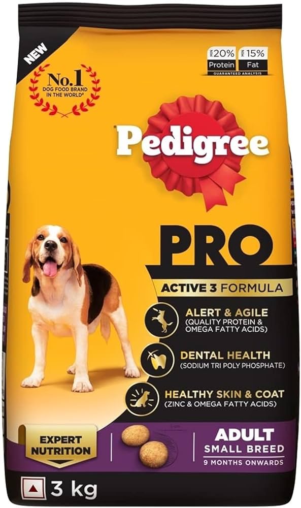 | PED PRO PUPPY SMALL BREED 3KG | Pedigree PRO Puppy Small Breed 3 kg is a complete dry dog food specially formulated for small breed puppies (typically 2 – 9 months old). It features a mini-kibble size and an expert Growth 3 formula with high-quality protein, vitamins, and minerals to support healthy growth, strong bones & teeth, skin & coat health, and digestion during the early puppy stage. |